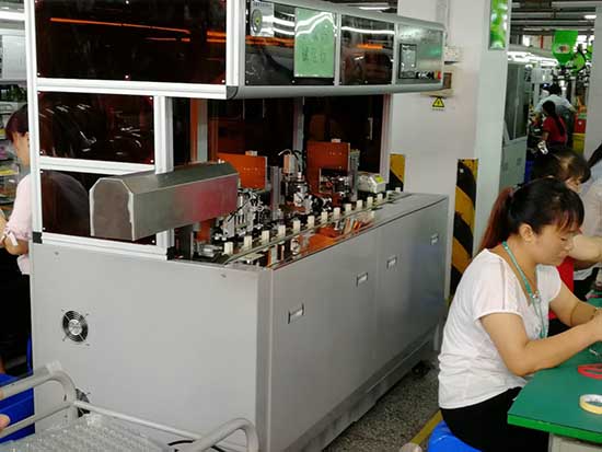 生產工藝:手動放線模組→加熱模組→剝皮模組→刷編織模組→分2股編織模組→分1股編織模組→扭編織模組→剪編織模組→反折編織模組→割鋁箔模組→脫鋁箔模組→自動取線